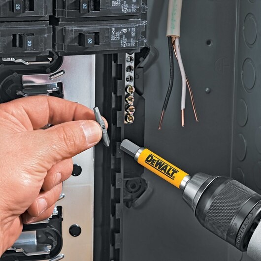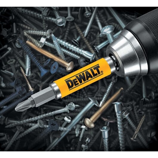 DEWALT Magnetic Drive Guides has a self-retracting guide sleeve that protects fingers and holds screws in place while eliminating wobbling and slipping.
