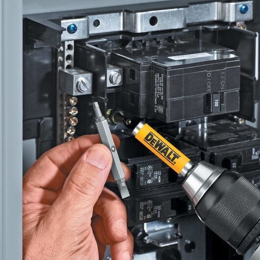 DEWALT ম্যাগনেটিক ড্রাইভ গাইডের একটি স্ব-প্রত্যাহারকারী গাইড হাতা রয়েছে যা আঙুলগুলিকে রক্ষা করে এবং দোলা ও পিছলে যাওয়া দূর করার সময় স্ক্রুগুলিকে জায়গায় রাখে।